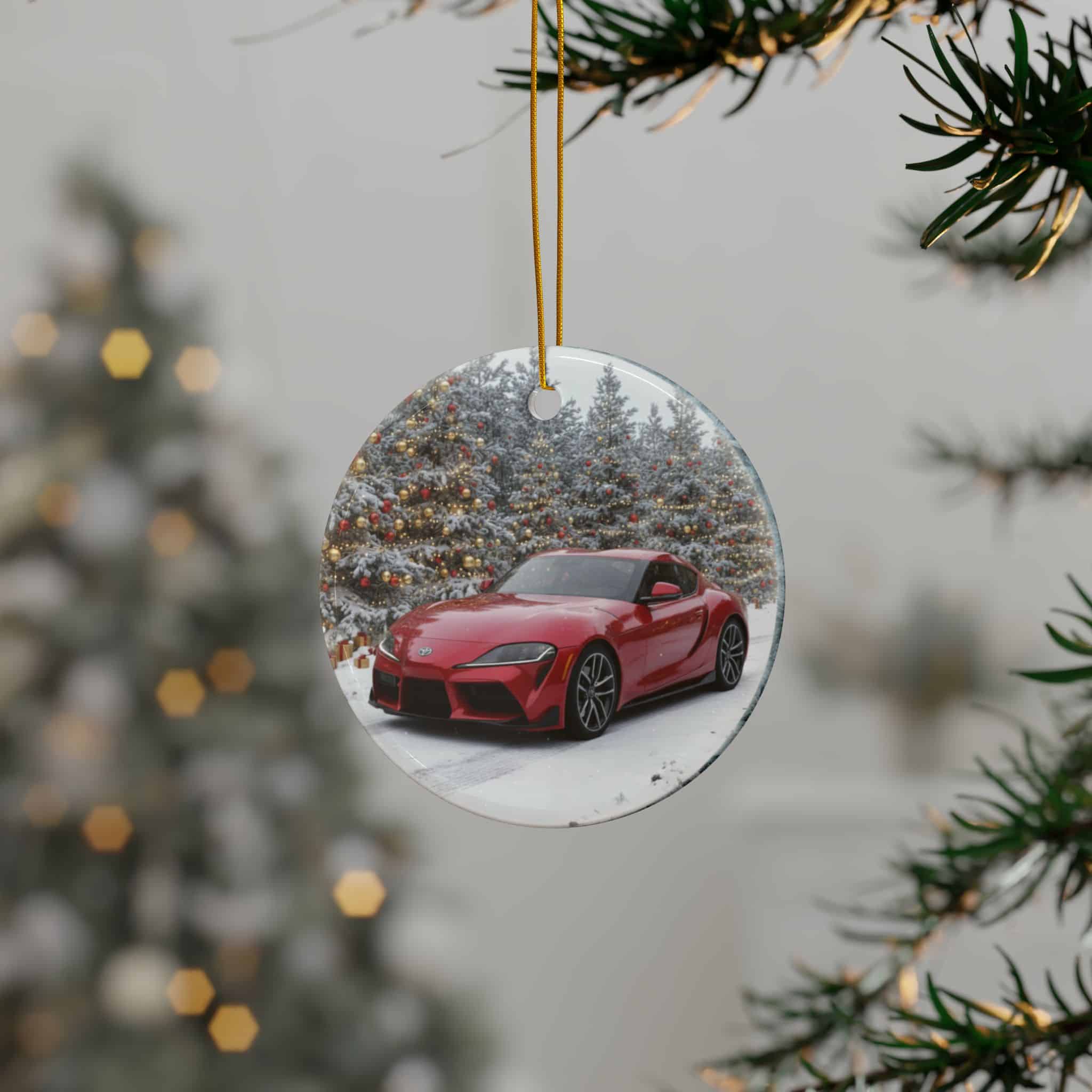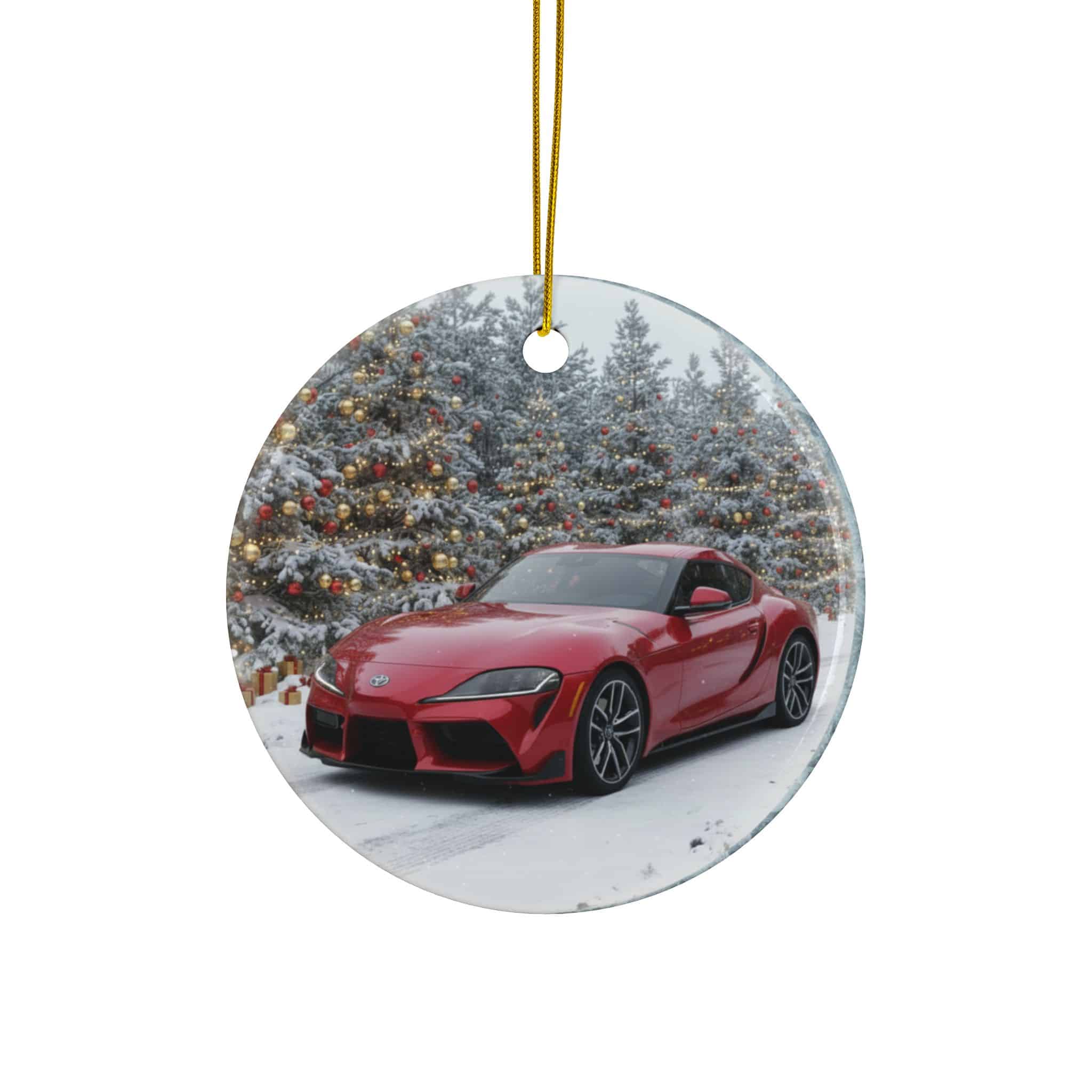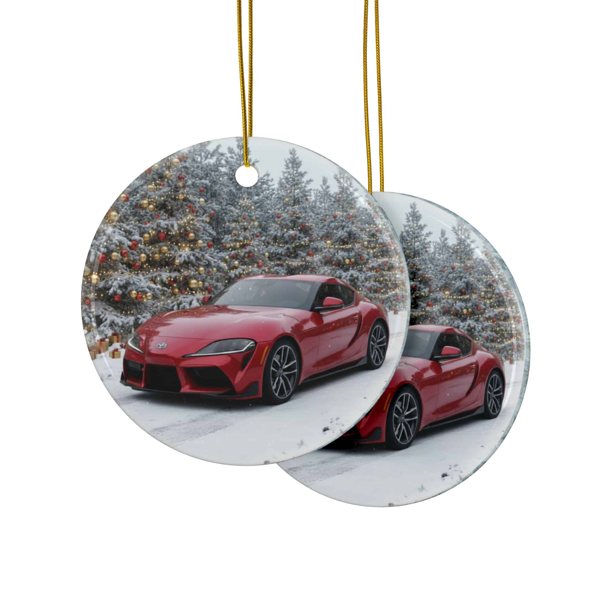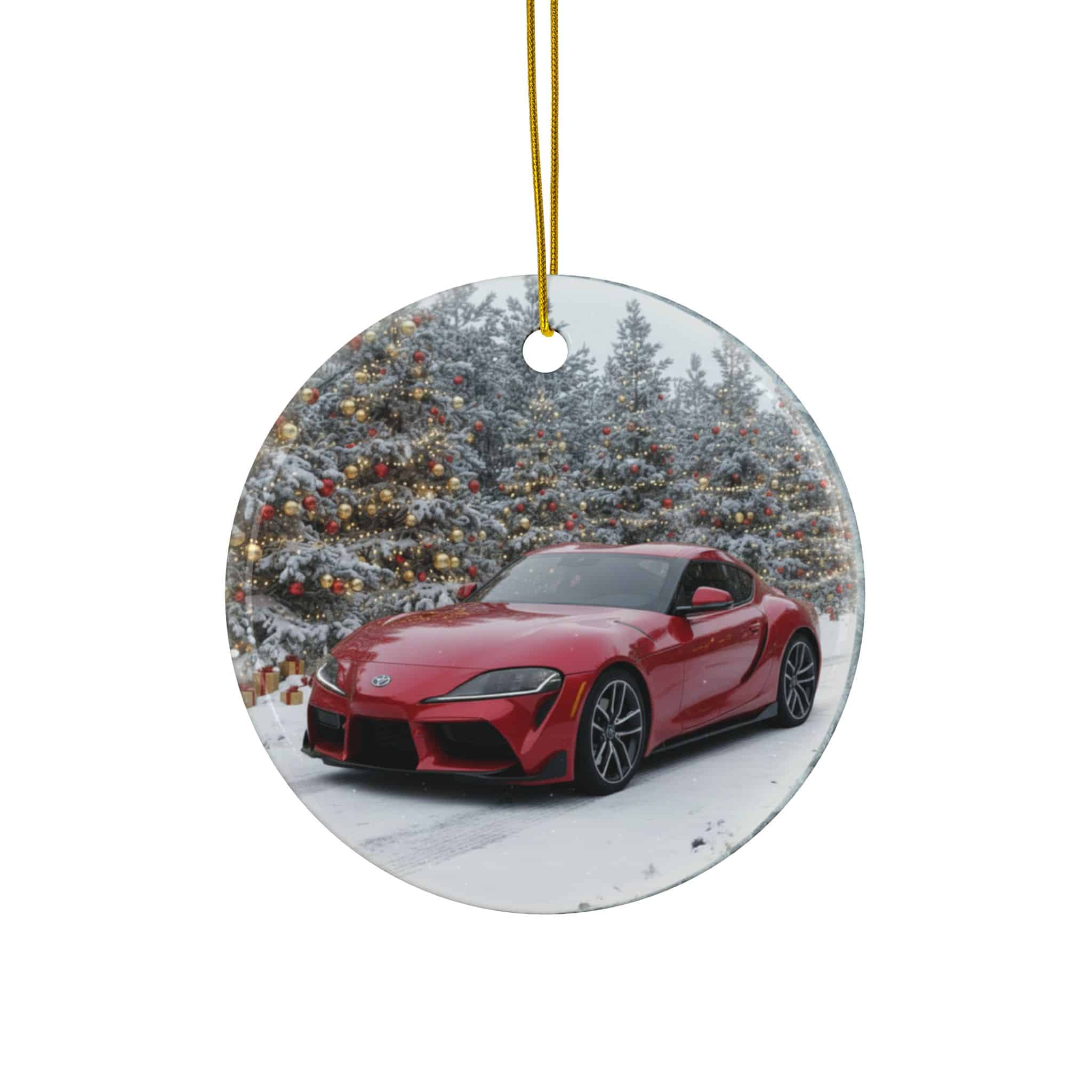 Add JDM performance and holiday style to your décor with this Toyota GR Supra Ceramic Christmas Ornament. Featuring the modern GR Supra in a festive winter scene, this ornament combines sleek Japanese design with Christmas cheer — perfect for car enthusiasts, collectors, and Supra fans alike.