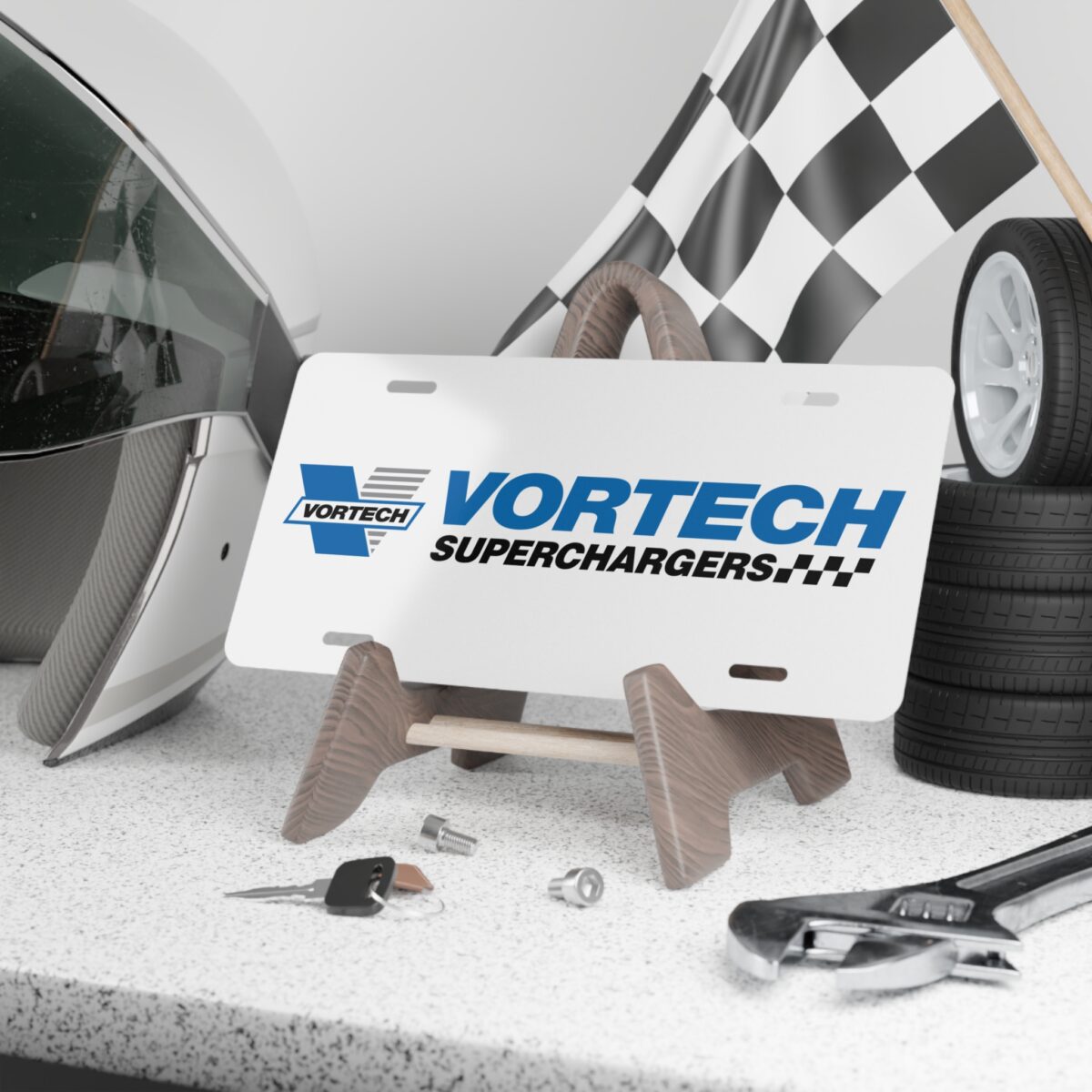 Show love for one of the most respected names in forced induction with this Vortech Superchargers License Plate. Featuring the bold Vortech logo, this plate brings instant high-performance energy to any vehicle, garage, dyno room, or shop. Known for their efficient, reliable, and powerhouse centrifugal superchargers, Vortech has been a staple in the racing and tuning world for decades — and now you can rep that same boosted attitude in your space.
